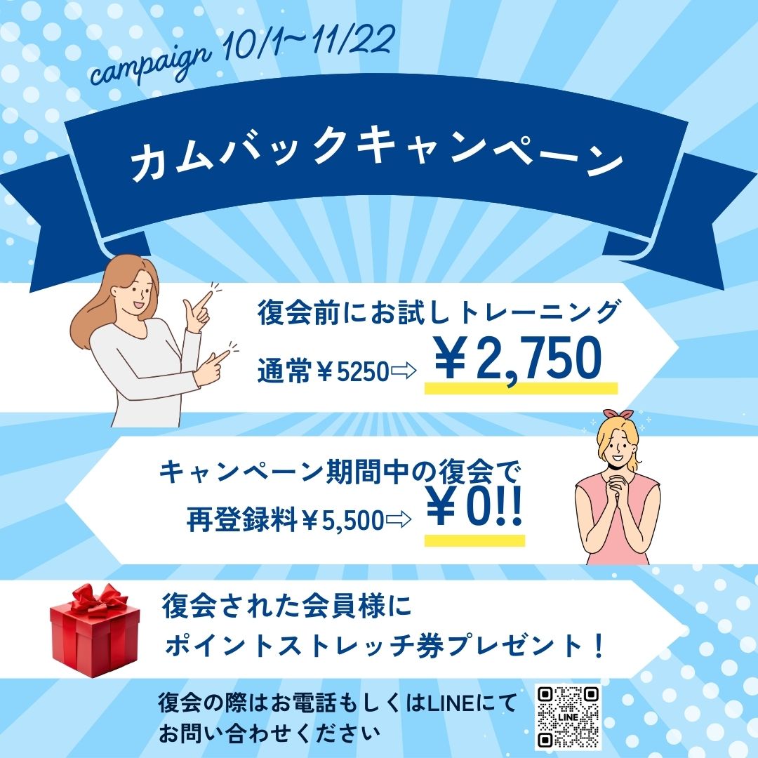 11/22まで休会中の会員様対象のお得なキャンペーン実施中